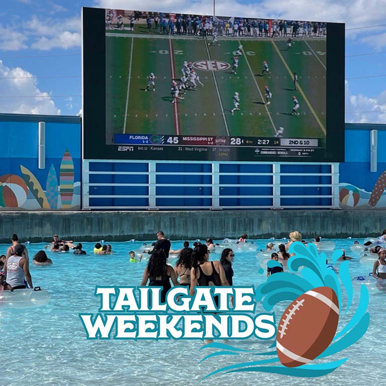 Weekends in September and October, bring your friends and experience the best place to catch the game in town at Island H2O Water Park.